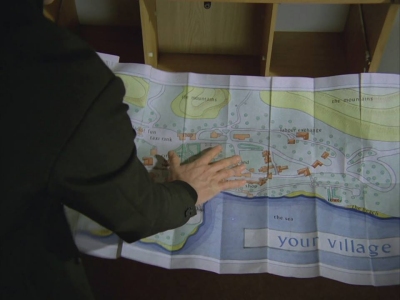 The below map is a watercolour Map of Your Village produced in 2000 by Roger Langley. Why produced in watercolour is unknown, but it is not an exact replica of Your Village Map, as it doesn’t show the hospital. One would have hoped for a much larger map, and less of the descriptive text! As the creator of the map goes to great pains to describe when and where we see the Village map in the series, as if we didn’t already know. He also goes into great detail describing how this replica map was created, as if that hardly matters! A real case of the calligrapher blowing his own trumpet!